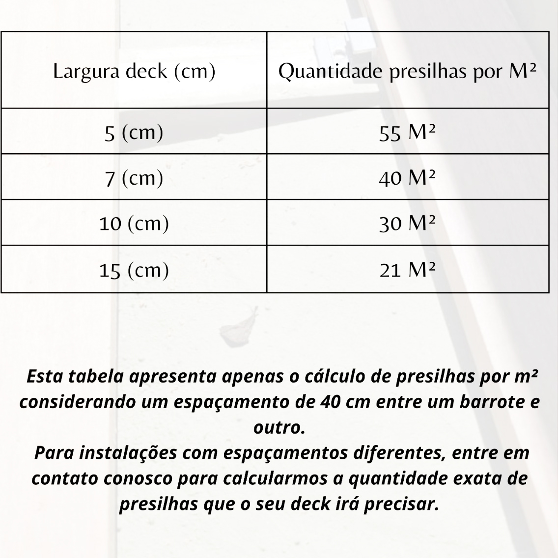 Fabricadas em liga de alumínio 6063 com têmpera T6, nossas presilhas são desenvolvidas especialmente para atender aos padrões da construção civil, garantindo resistência mecânica, durabilidade e leveza. O acabamento recebe pintura eletrostática na cor preta, que protege contra oxidação e confere um visual discreto e sofisticado. A fixação oculta proporciona um deck uniforme, sem parafusos aparentes, valorizando a estética e aumentando a vida útil da madeira.